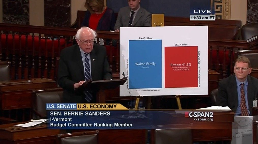 This is a nice straightforward piece of data visualization. We don’t even need to hear what Presidential-hopeful, Bernie Sanders, is saying to see clearly the ridiculous wealth inequality he’s talking about. And the decision from this data is just as clear that the government needs to get involved in cleaning up this huge mess. Unless your last name is Walton, then the decision is, “wait, there’s another $123B sitting around? We need to get us some of that.” Moving on…