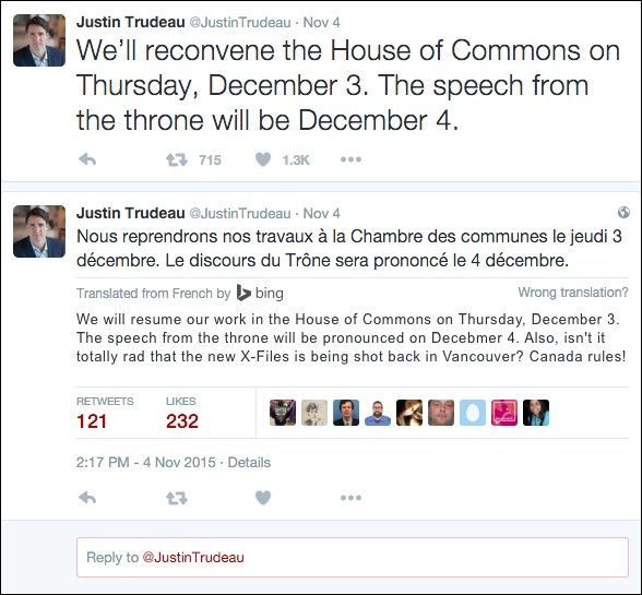 — Justin Trudeau (@JustinTrudeau) November 5, 2015